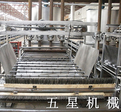 2.成型系統(tǒng):該系統(tǒng)由供料罐、續(xù)棉箱、定型機(jī)、真空抽濾機(jī)、濾網(wǎng)、水切機(jī)及加速機(jī)組成。經(jīng)過此系統(tǒng)生產(chǎn)出符合客戶要求長(zhǎng)度、寬度、厚度、重量的坯板,未達(dá)標(biāo)的產(chǎn)品循環(huán)利用,減少損失。
